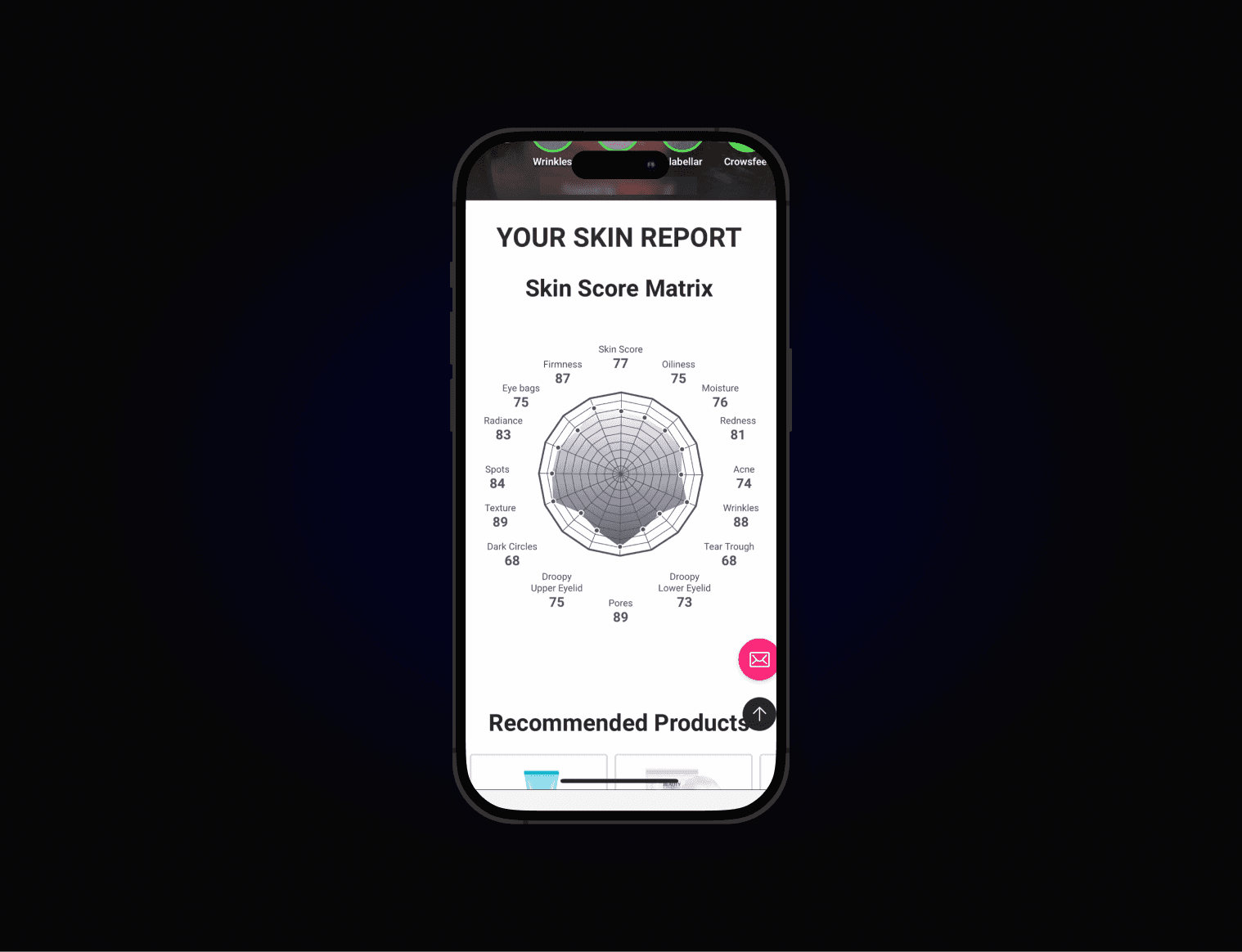 Visualizing Complex Data: Translating raw AI metrics (like skin age, texture, and acne scores) into a clean, easy-to-read report that sales reps could explain at a glance, avoiding information overload.